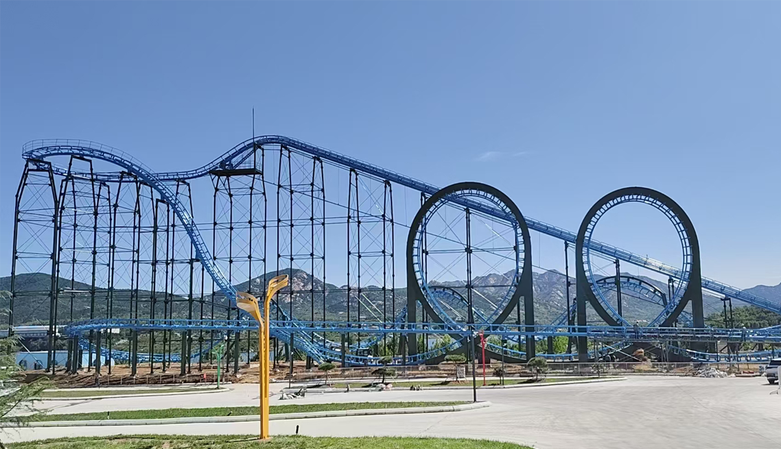 On September 15, 2025, the core equipment of Nanshan Tourist Scenic Area in Longkou City, Shandong Province – the Six-loops roller coaster – successfully completed its first test run. The equipment operated stably throughout the process, and all performance indicators met the design standards.